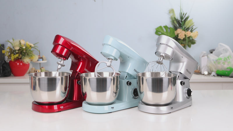 • 3 Essential Attachments: Comes with a dough hook, flat beater, and whisk, each designed to handle different mixing needs — from thick bread dough to fluffy egg whites.